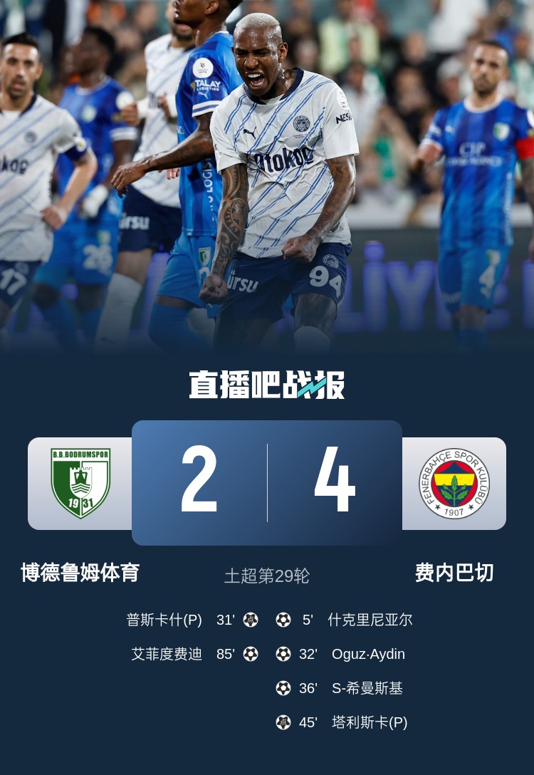 13輪不敗!費(fèi)內(nèi)巴切4-2博德魯姆體育距榜首6分 塔利斯卡點(diǎn)射+送點(diǎn)