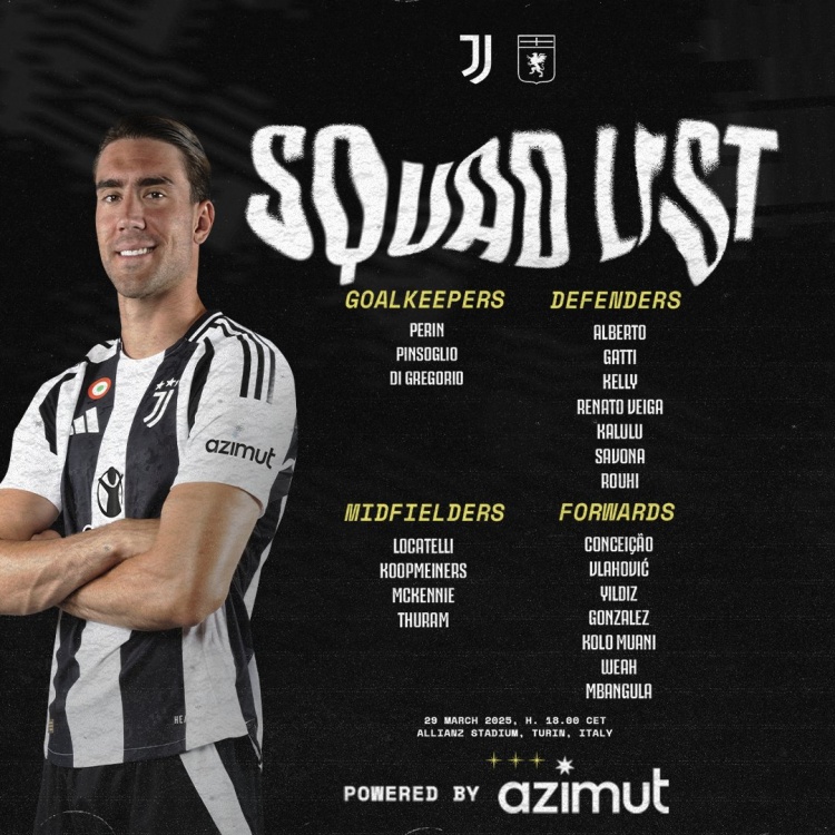 - 尤文對(duì)熱那亞名單:小孔塞桑、DV9在列,坎比亞索、D-路易斯缺席