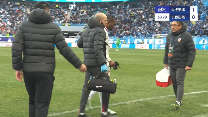 03月29日訊 大連英博vs長春亞泰第54分鐘,西普里安傷退,亞泰本場已經(jīng)3人因傷被換下!