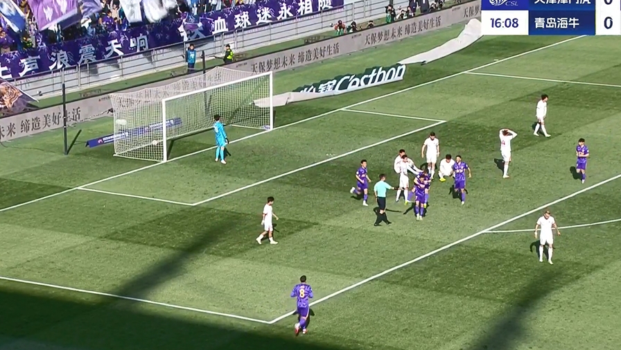 比賽第16分鐘,基萊斯禁區(qū)內(nèi)停球后轉(zhuǎn)身回做,羅斯推射破門(mén),收獲加盟津門(mén)虎后的處子球,津門(mén)虎1-0海牛。