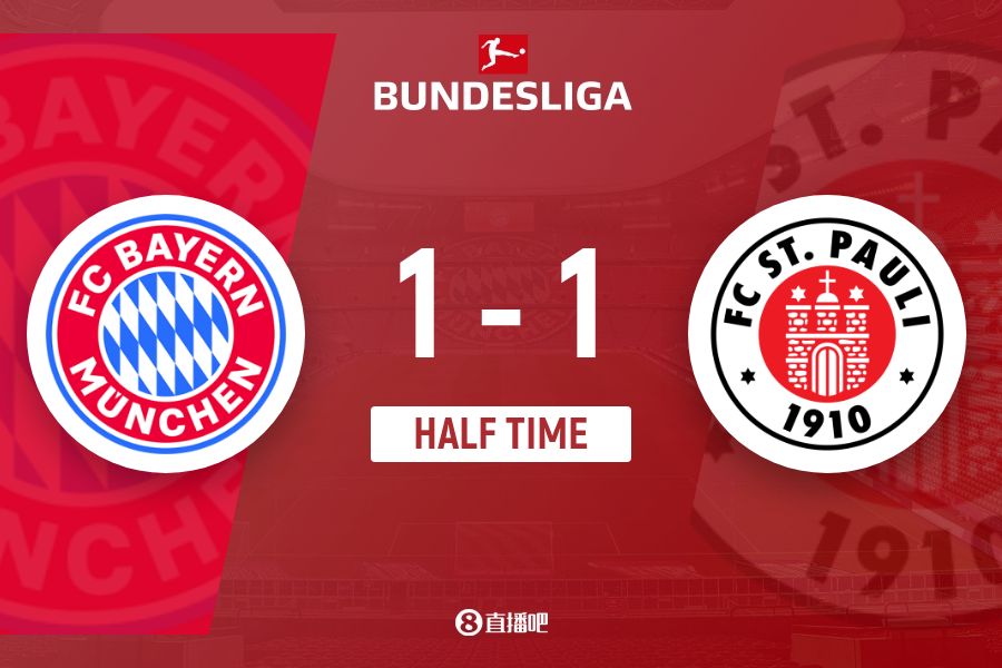 上半場傷停補(bǔ)時(shí)3分鐘,半場結(jié)束,拜仁暫1-1圣保利。