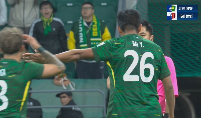 03月29日訊 中超第3輪,北京國安客場1-1戰(zhàn)平成都蓉城。比賽最后階段,蓉城進攻被解圍,皮球打到主裁馬寧身上后反彈,張玉寧得球獲得超級大單刀機會,但此時馬寧果斷吹響哨聲,全場比賽結束!