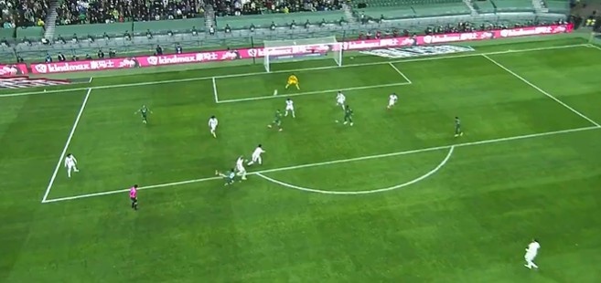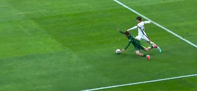 第31分鐘,楊立瑜左路弧頂內(nèi)切兜射被防守球員擋出底線。↓