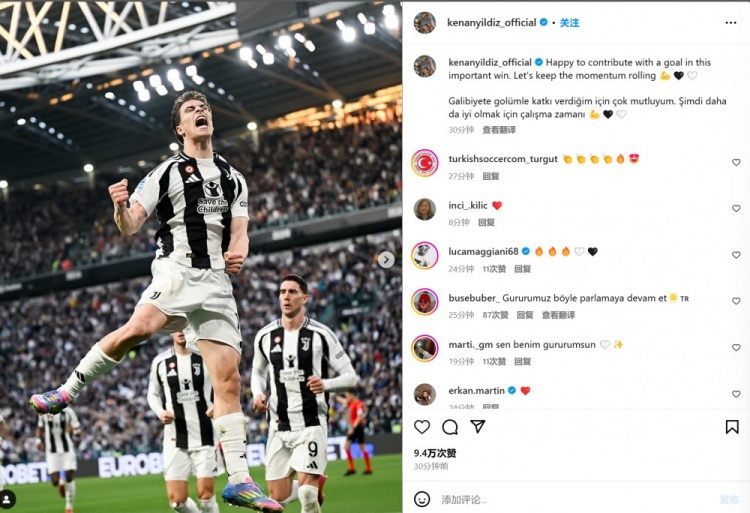 3月30日訊 尤文在本輪意甲1-0擊敗熱那亞,圖多爾取得執(zhí)教后首勝,打進(jìn)制勝球的伊爾迪茲也通過社媒曬照慶祝。