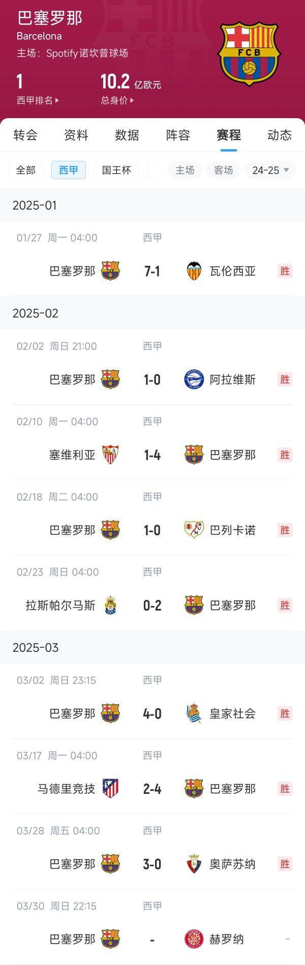 巴薩:8連勝(本輪未賽)