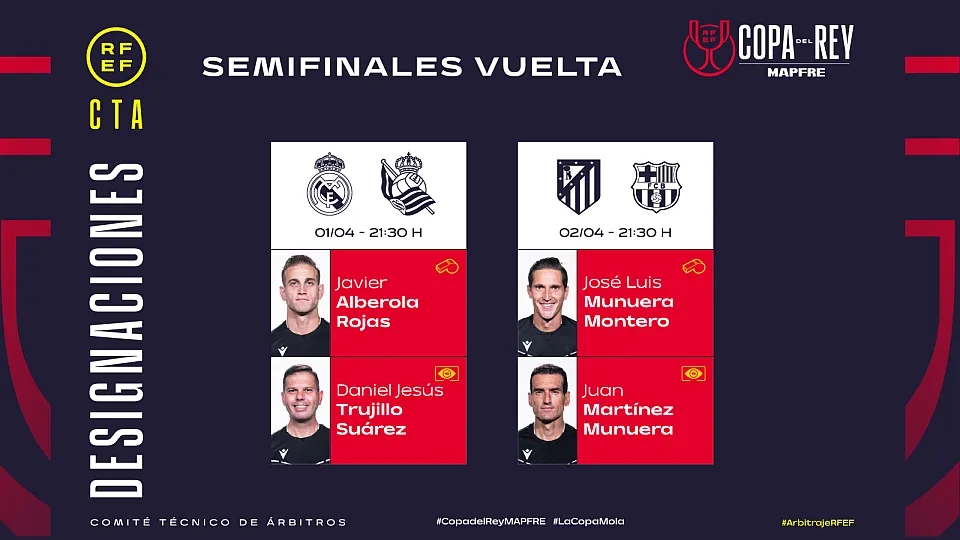 國王杯半決賽次回合裁判:羅哈斯執(zhí)法皇馬,蒙特羅吹巴薩vs馬競