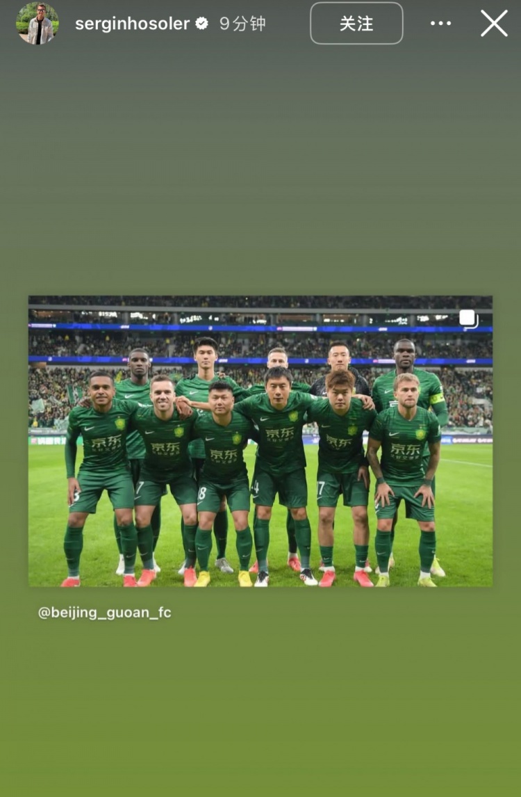 塞爾吉尼奧再更社媒曬與蓉城賽前合影,紀(jì)念自己的國安首秀