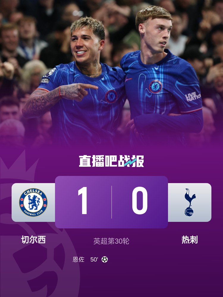 本輪英超焦點(diǎn)戰(zhàn),切爾西1-0擊敗熱刺,恩佐打入全場唯一進(jìn)球。