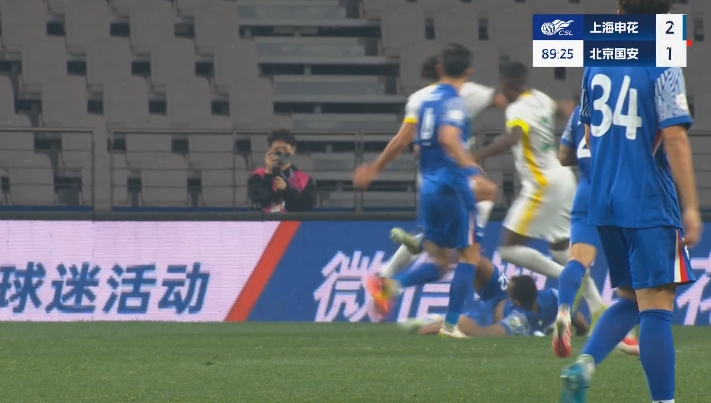 【判例一】:中超聯(lián)賽第2輪,上海申花VS北京國(guó)安,比賽第89分鐘,北京國(guó)安9號(hào)隊(duì)員在對(duì)方罰球區(qū)內(nèi)與上海申花32號(hào)隊(duì)員爭(zhēng)搶球后倒地,裁判員未判罰犯規(guī),VAR未介入。