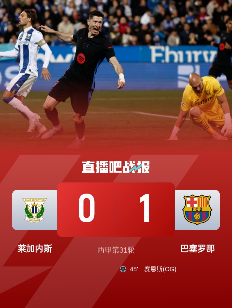 西甲第31輪,巴薩客場1-0戰(zhàn)勝萊加內(nèi)斯,拉菲尼亞造烏龍。