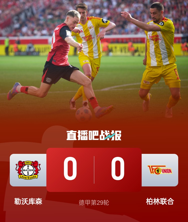 德甲第29輪,勒沃庫森0-0悶平柏林聯(lián)合。