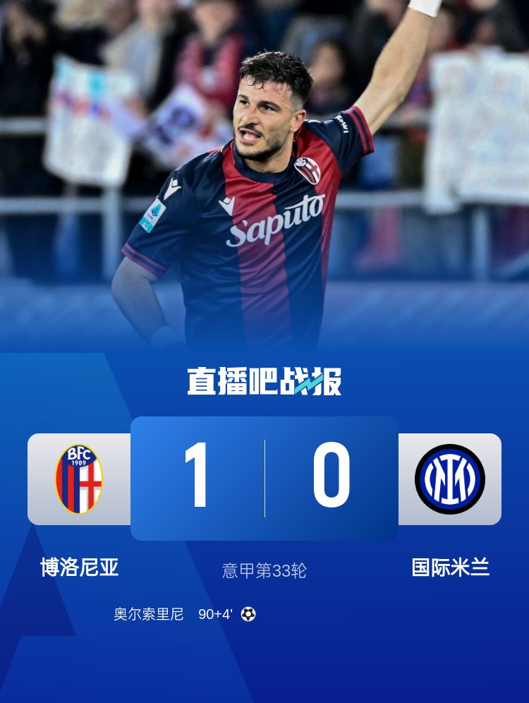 意甲第33輪戰(zhàn)罷多場,國際米蘭0-1不敵博洛尼亞,那不勒斯1-0擊敗蒙扎,兩隊現(xiàn)意甲同積71分。