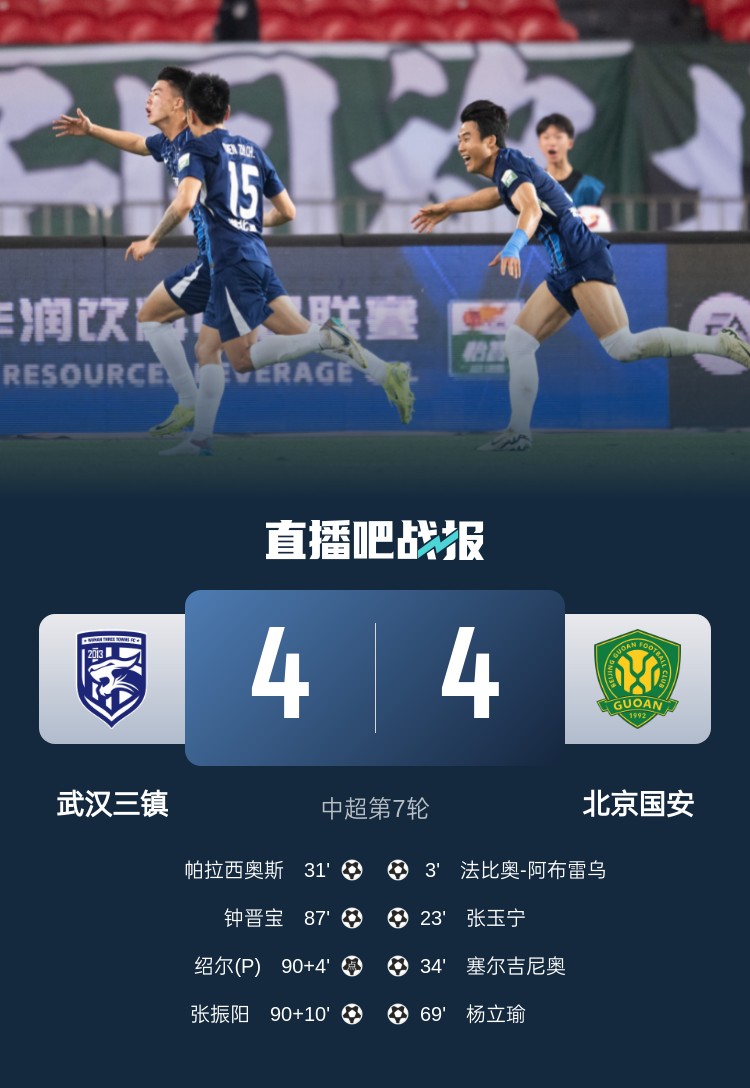 易帥后,武漢三鎮(zhèn)在主場3-1擊敗云南玉昆,狀態(tài)回暖。隨后迎戰(zhàn)國安,國安半場取得3-1領先,下半場國安又將比分擴大為4-1。